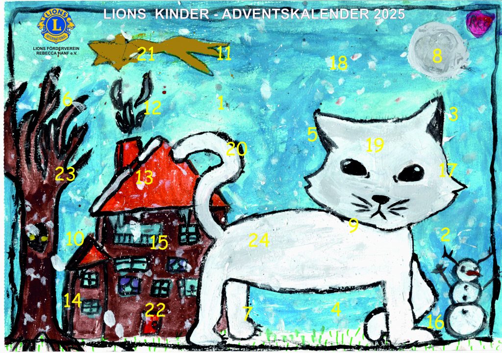 Alle Jahre wieder: Der Kinderkalender vom Lions Club Rebecca Hanf ist da. Schon seit vielen Jahren gehört der Kalender zur Weihnachtszeit wie Spekulatius und gebrannte Mandeln. In Anlehnung an das Gedicht „Die drei Spatzen“ von Christian Morgenstern hat Jaron aus der dritten Klasse der Dorfschule in Witten Heven dieses schöne Bild gemalt. Es beschreibt die Geborgenheit und den Schutz, den sich drei Spatzen bei eisiger Kälte gegenseitig geben können. Dieses Bild passt auch sehr gut zum guten Zweck des Kalenders: Der Lions Club Rebecca Hanf fördert mit dem Erlös Projekte, die Kinder und Jugendlichen unterstützen.
